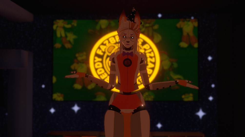 GoGoLoco, Hair Swap, Tail Swap, Ear Swap, Bowtie, Party Hat, Fazglasses, Shoes, Hair Bow, Fishnets, Garters, Panties, Bra, Opening Faceplates, Opening Chest Cavity, Minireena inside Chest Cavity, Knife, Heart, and a Microphone